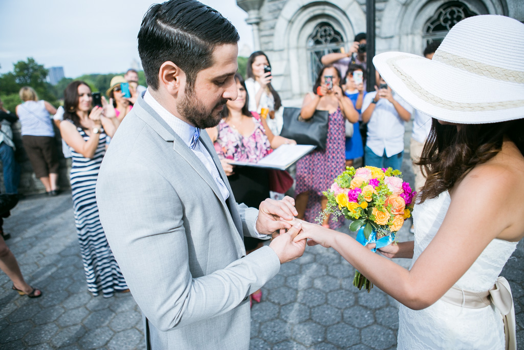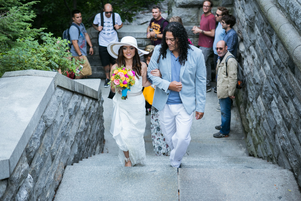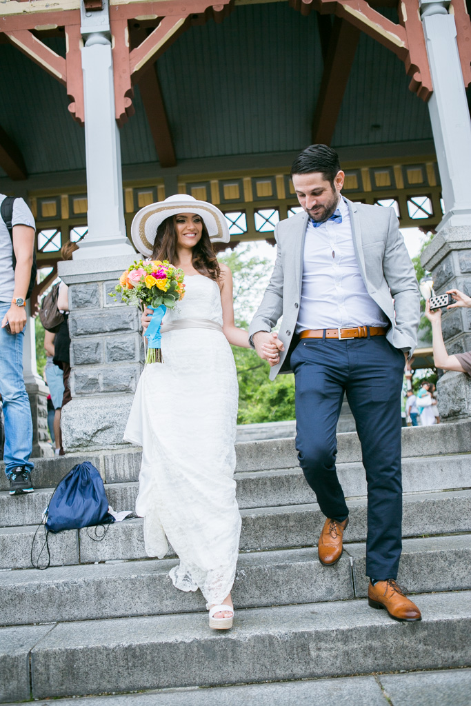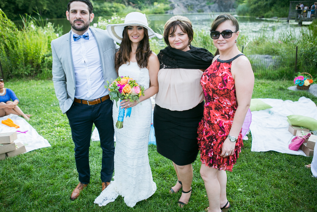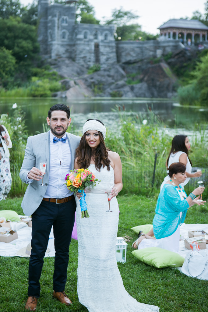 One of the most iconic locations in Central Park, Belvedere Castle is a piece of art by itself. It has a perfect backdrop for the ceremony and its layout provide shade and beautiful view of the lake, which is ideal for the pictures. The couple knew that they want to have a small ceremony with close friends and family only and after that reception picnic at the lawn by the park.