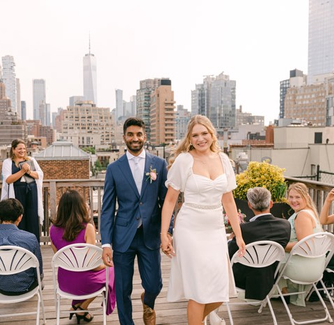 Say ” I do” with the downtown view. This terrace is perfect for a small elopement ceremony. The stunning penthouse deck offers views of the Freedom Tower and the Empire State Building. Ideal for a group of 10. Please note that there is no inside area and the ceremony occurs rain or shine on the deck. The rental time included the setup and clean-up already, so 30 minutes before the ceremony to set up and 30 minutes after.