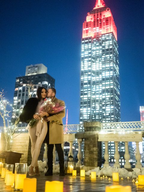 This amazing venue has both inside and outside areas, so in case of rain, the proposal can be moved inside. The terrace has direct view to the Empire State Building.