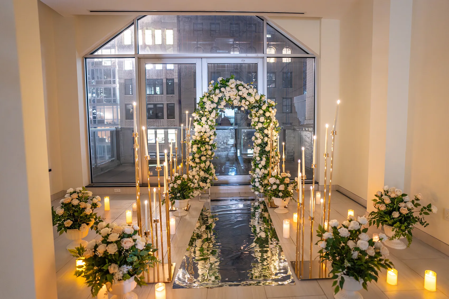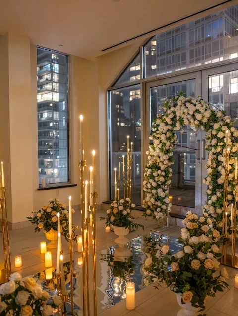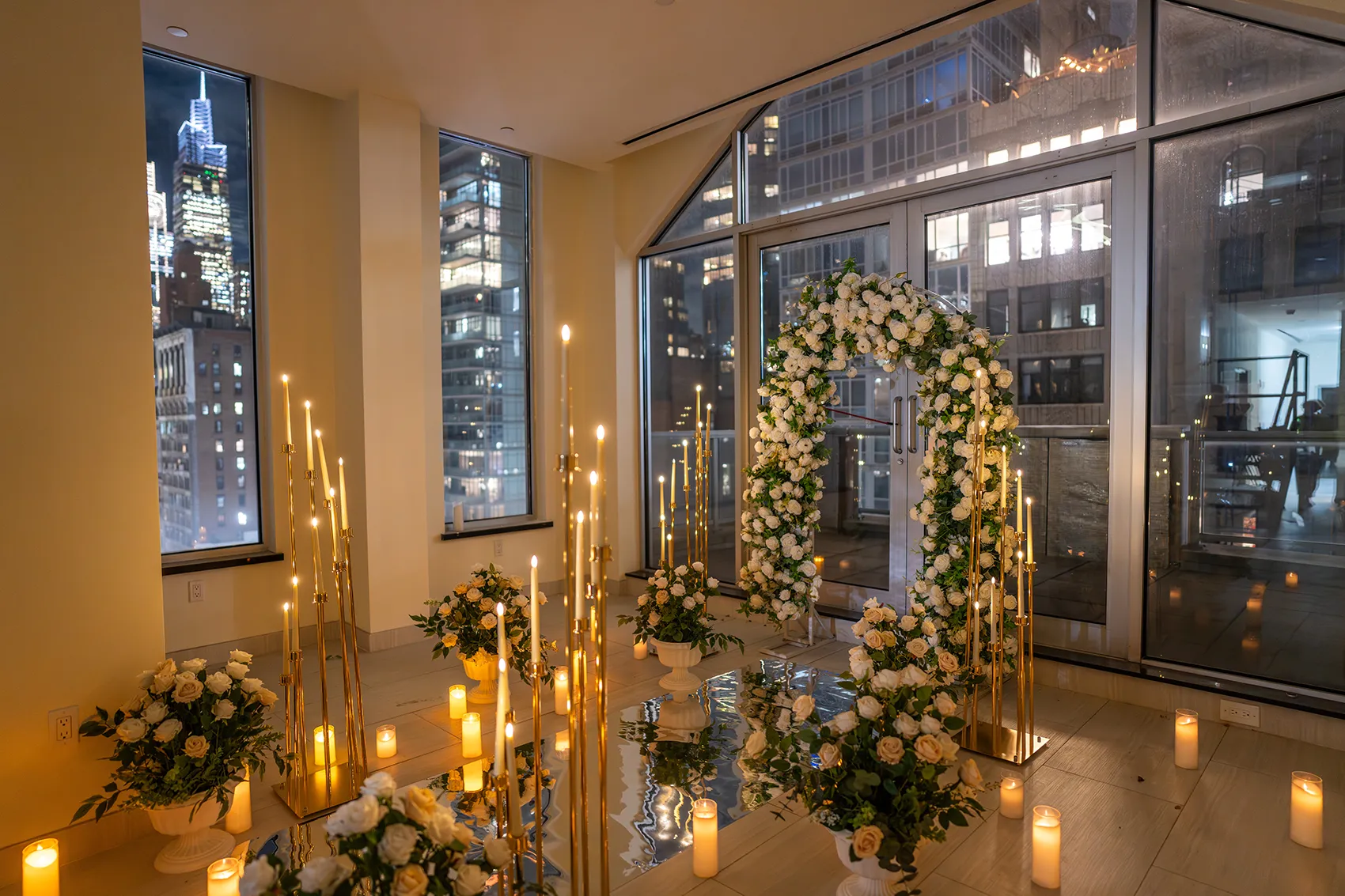 This stunning sunlight penthouse is ideal for a small wedding ceremony in New York. The venue has a indoor space and an outdoor terrace.